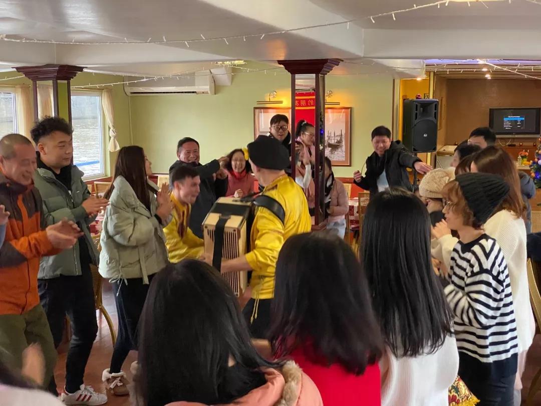 游艇上早已備好了香檳酒水,歡迎尊貴的中國(guó)游客的到來(lái)。