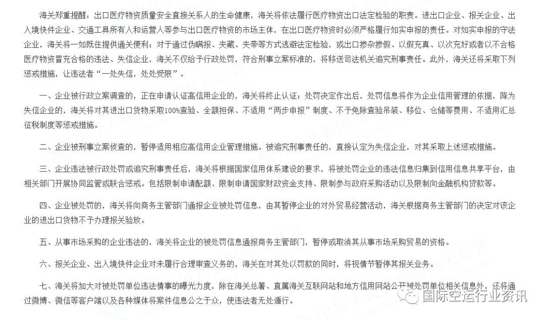 對于通過偽瞞報、夾藏、夾帶等方式逃避法定檢驗,或出口摻雜摻假、以假充真、以次充好或者以不合格醫(yī)療物資冒充合格的違法、失信企業(yè),海關(guān)不僅給予行政處罰,符合刑事立案標準的,將移送司法機關(guān)追究刑事責(zé)任。