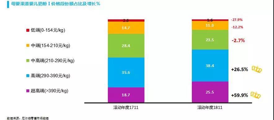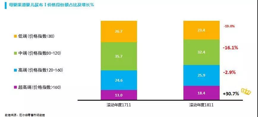 過去的一年,我們可以看到母嬰品類高端化市場集中爆發(fā),以下我們從奶粉、紙尿褲等細分領域的市場變化和品牌表現(xiàn)來證實這一點。