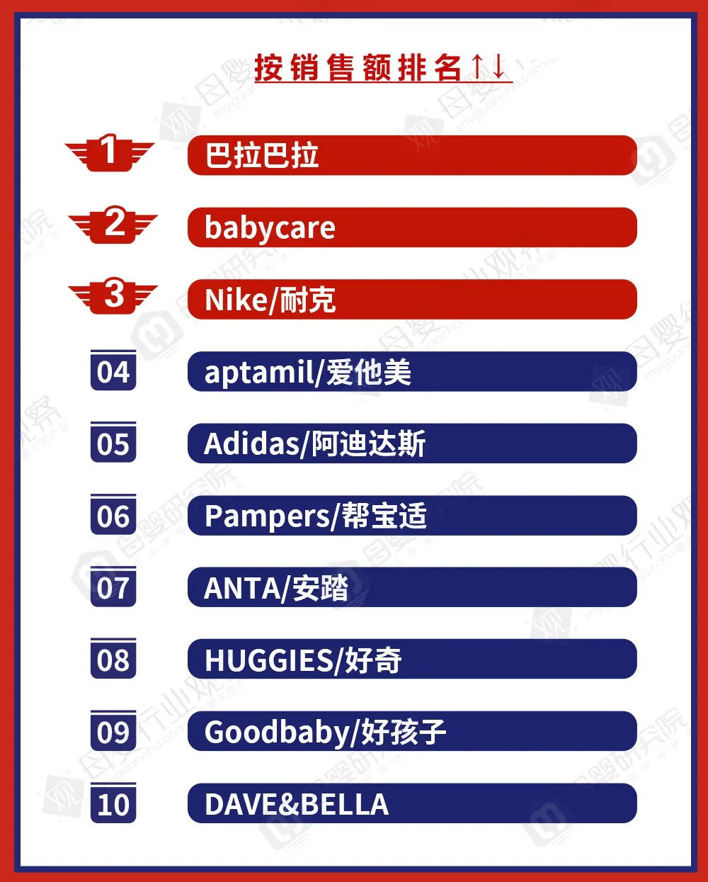 天貓公布11月1日~11日母嬰親子品牌銷售TOP10,巴拉巴拉、babycare、Nike、愛他美、Adidas、幫寶適、安踏、好奇、好孩子、戴維貝拉紛紛上榜。同時還公布了碧芭寶貝、布魯可、寶寶饞了、bebebus等超級新銳黑馬,從這兩個榜單延展,以下幾點思考和大家分享。