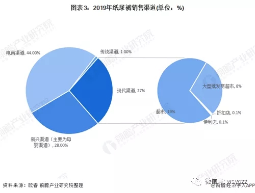 但是對于中國紙尿褲品牌,無論是市場層級提升或下沉,都需要在渠道中有符合自身發(fā)展的定位。隨著互聯(lián)網(wǎng)、5G、人工智能等技術(shù)的發(fā)展,電商渠道、新興渠道逐漸占據(jù)主要銷售渠道。據(jù)歐睿數(shù)據(jù),2019年紙尿褲銷售渠道中,電商渠道占比44%;新興渠道主要為母嬰渠道占比28%。.jpg)