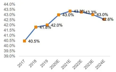 2017-2019 年衛(wèi)生巾業(yè)務的毛利率(%)