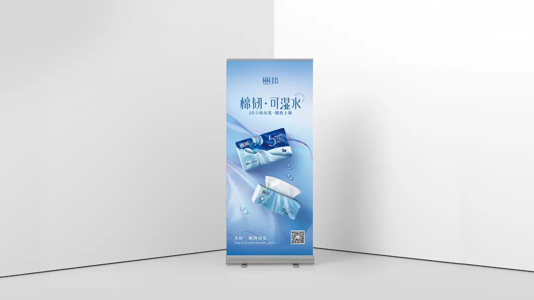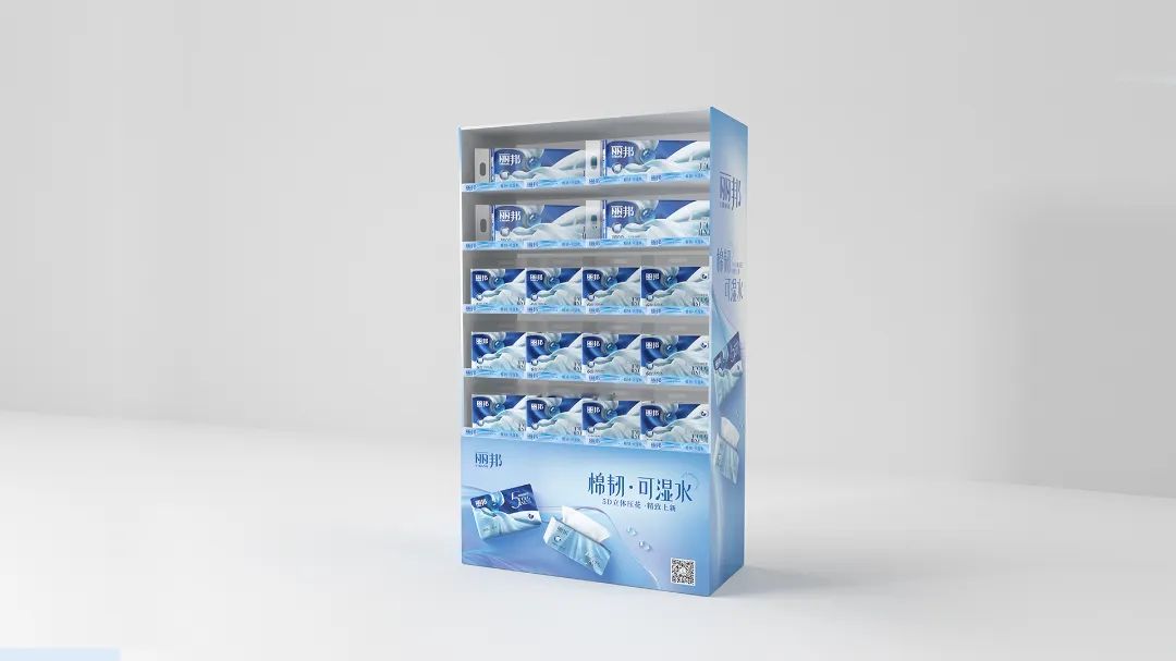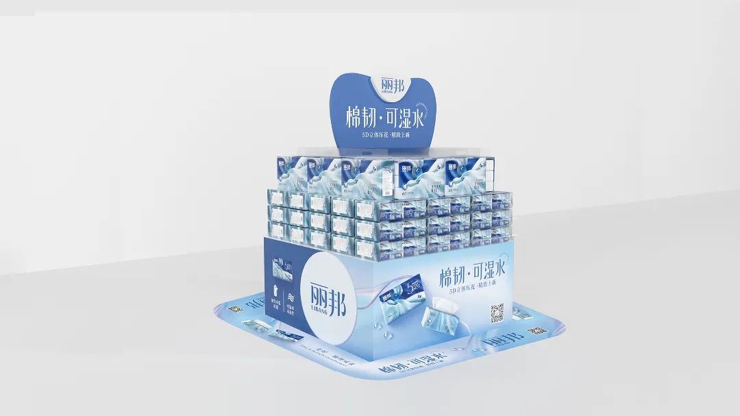 棉韌·可濕水系列攜5D立體壓花精致上新,海報(bào)購(gòu)物袋堆頭展示架等終端物料一體配套,直指產(chǎn)品核心訴求。