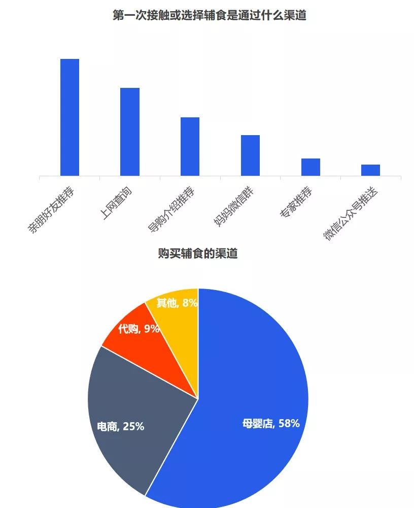 但是對于品牌而言,最重要的是洞察需求,一個好的洞察,一定是清晰揭示消費(fèi)者的傾向,暗示了一個市場機(jī)會。究竟品牌入局輔食的機(jī)會有多大,媽媽們是如何看待輔食的? 從當(dāng)前的嬰幼兒用品的采購情況來看,媽媽負(fù)責(zé)嬰幼兒用品的采購,用戶占比超七成。奶爸也會經(jīng)常協(xié)助寶媽,參與到嬰幼兒用品的采購活動中,用戶占比為41.7%。 從近一年的百度指數(shù)來看,目前關(guān)注輔食最突出的地域是廣州、浙江、江蘇、山東、北京等,可見,當(dāng)前一二線城市的消費(fèi)者對輔食的認(rèn)知教育有所提高,但是低線城市的消費(fèi)者對寶寶輔食的添加還不重視。 其次,從年齡段來看,“30-39歲”的消費(fèi)人群對輔食的關(guān)注度最高,而在這其中,女性對輔食的關(guān)注度遠(yuǎn)高于男性。 2019年母嬰行業(yè)觀察通過線上調(diào)研近10000人數(shù)的家長進(jìn)行了輔食調(diào)查,其中80后占據(jù)24%,85后占據(jù)26%,90后44%,95后4%,對輔食的態(tài)度如下: 1、幾乎所有的媽媽都認(rèn)為有必要給寶寶添加輔食,并且有一半的媽媽認(rèn)為要在6個月時添加,而有32%的媽媽認(rèn)為在6個月-1歲開始添加,還有16%的人在6個月以前就添加輔食。 2、大部分寶寶的輔食來源都是“購買與自制”相結(jié)合,而在購買輔食時,媽媽們購買最多的類型依舊是米粉,其次則是餅干、磨牙棒等小食品、營養(yǎng)面等。 3、互聯(lián)網(wǎng)與社交圈對媽媽的購買決策權(quán)的影響力較大,據(jù)調(diào)查顯示,媽媽們第一次接觸或選擇輔食大多都是通過親朋好友推薦,上網(wǎng)查詢等。當(dāng)然消費(fèi)者在購買嬰兒輔食的渠道選擇上,其實(shí)與奶粉并無不同,為了保證產(chǎn)品的質(zhì)量和安全性,同時也為了可以得到育嬰專家的指導(dǎo)和幫助,消費(fèi)者更傾向于在專業(yè)的母嬰用品連鎖店或主流電商平臺購買食品。 4、隨著85后、90后新生代父母的崛起,他們與父輩的消費(fèi)觀念并不相同,不再執(zhí)著與于進(jìn)口與價格等,而是開始關(guān)注是營養(yǎng)配方,重要的是寶寶喜歡。 5、對于寶寶而言,自添加輔食開始,都是與奶粉喂養(yǎng)相結(jié)合,目前超一半的寶寶每天食用輔食的頻率都是一天兩頓。當(dāng)然這在一定程度上也決定了每個月在寶寶的輔食上的花費(fèi)是多少,從月消費(fèi)來看,可以明顯看出200以內(nèi)的將近半數(shù),當(dāng)然也可以看出花費(fèi)在300以上的有21%,可見,對于嬰兒食品這個特殊的品類,以及嬰幼兒這個特殊的消費(fèi)人群,消費(fèi)持續(xù)升級仍然明顯。近兩年來,嬰幼兒輔食高端化、有機(jī)化趨勢明顯。 近幾年來,越來越多的媽媽意識到輔食的重要性,隨著我國居民可支配的收入不斷提高,消費(fèi)者投入了更多的關(guān)注給自己的孩子,作為寶寶的第二餐,消費(fèi)者愿意投入更多費(fèi)用,使用周期會不斷變長,且更注重輔食產(chǎn)品的品質(zhì)和質(zhì)量??梢婋S著消費(fèi)水平的提升,年輕父母對于對孩子的飲食質(zhì)量、飲食營養(yǎng)的投入更加重視,會更追求高附加值、高品質(zhì)的輔食,中國輔食市場會繼續(xù)高速發(fā)展。