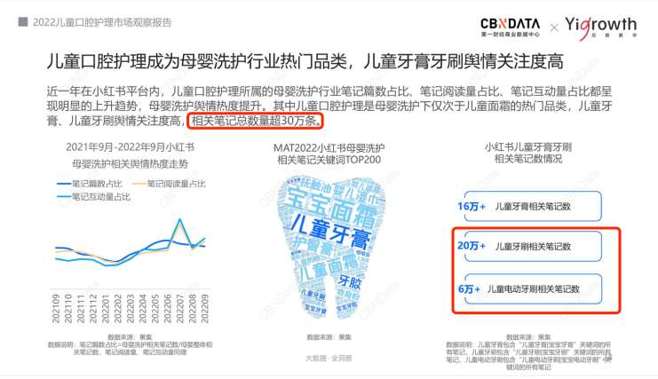 在此背景下,一場(chǎng)兒童口腔健康“保衛(wèi)戰(zhàn)”,在年輕育兒家庭中開始打響。從《兒童口腔護(hù)理市場(chǎng)觀察報(bào)告》中獲悉,在小紅書平臺(tái)內(nèi),兒童口腔護(hù)理所屬的母嬰洗護(hù)行業(yè)筆記篇數(shù)占比、筆記閱讀量占比、筆記互動(dòng)量占比都呈現(xiàn)明顯的上升趨勢(shì)。